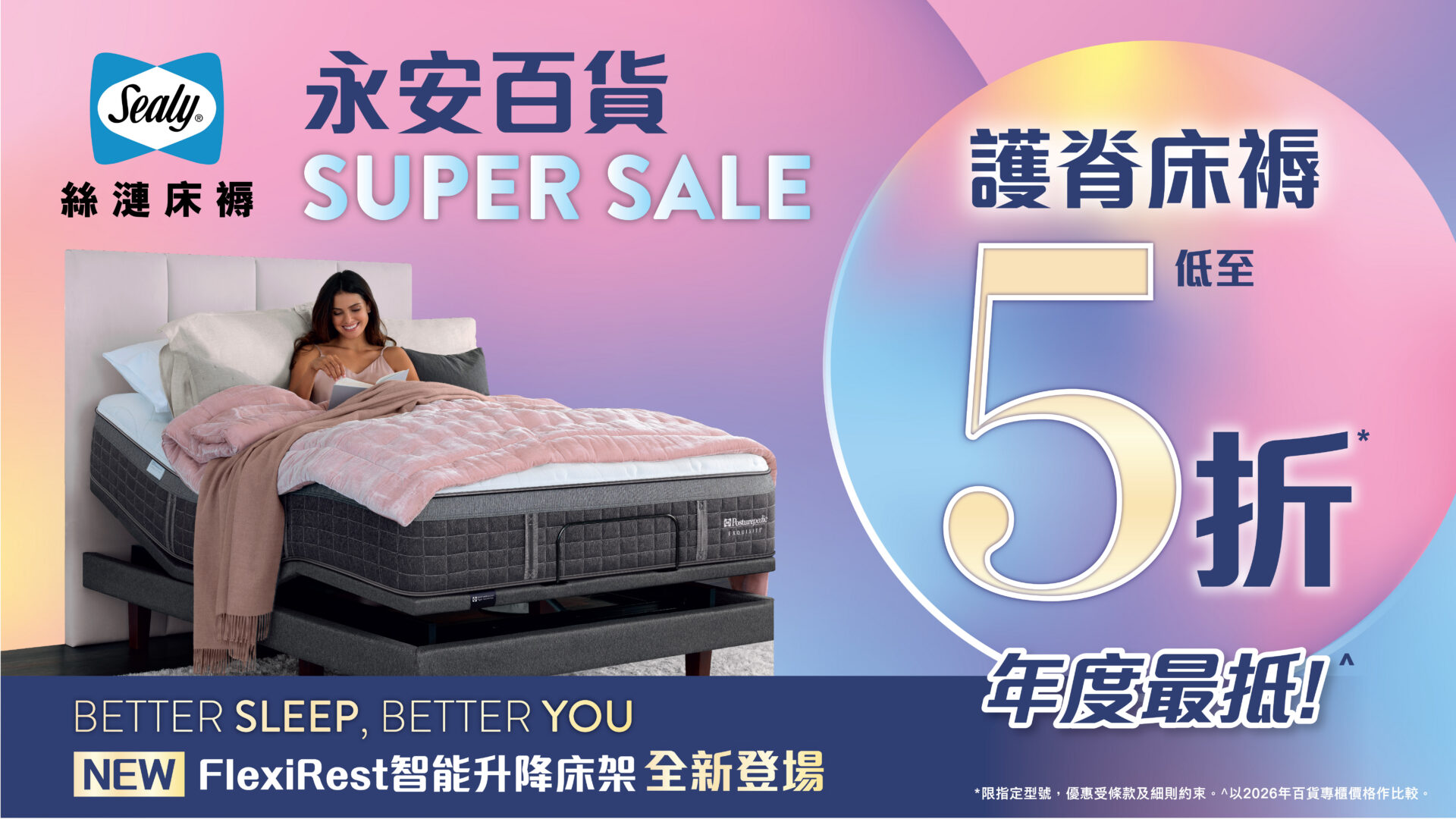 從此進入Sealy床褥的睡眠國度,享受護脊及舒服睡眠的全新體驗。